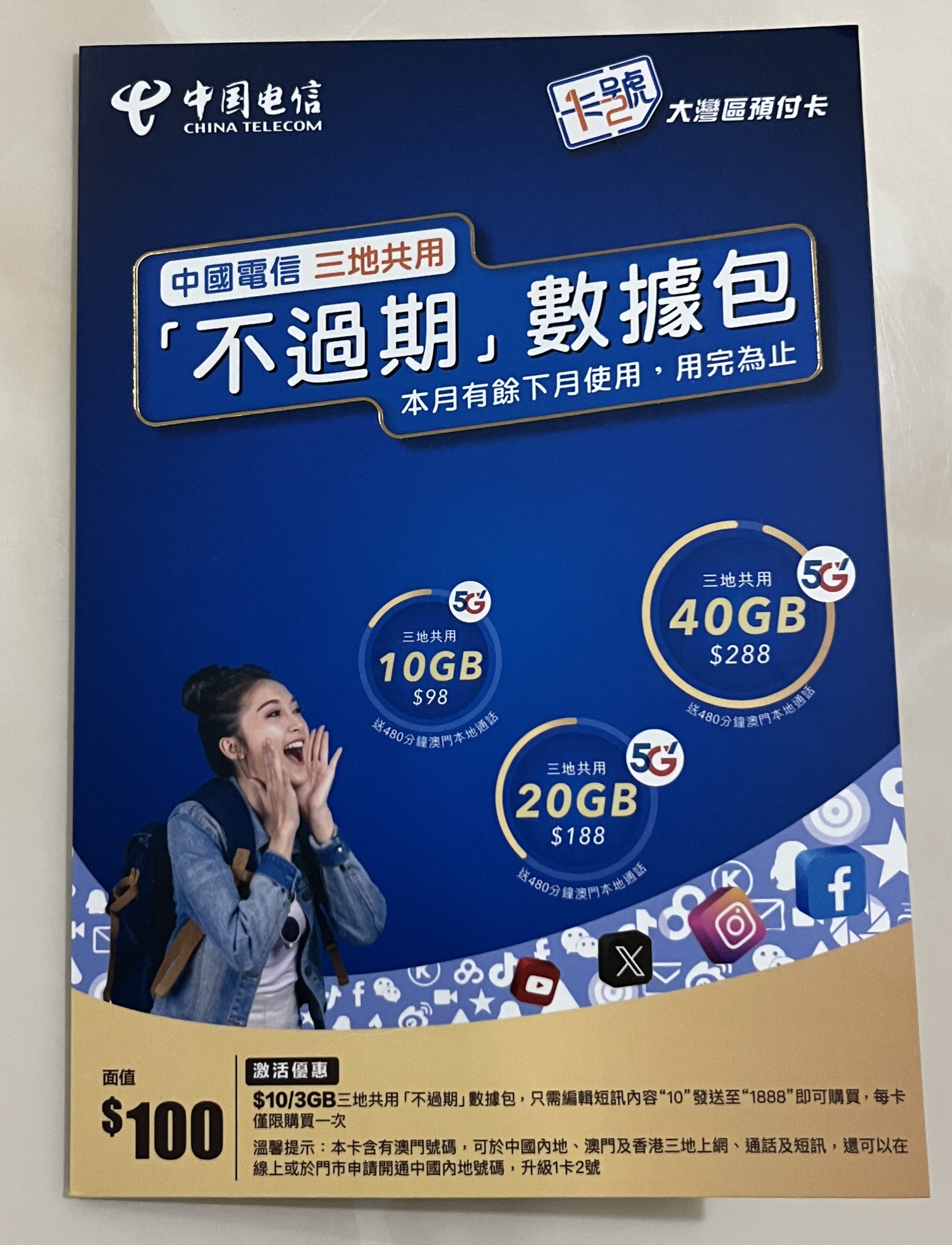 请关注微信服务号《中国电信澳门》绑定你的澳门手机号码,以便后续进行充值和保号。